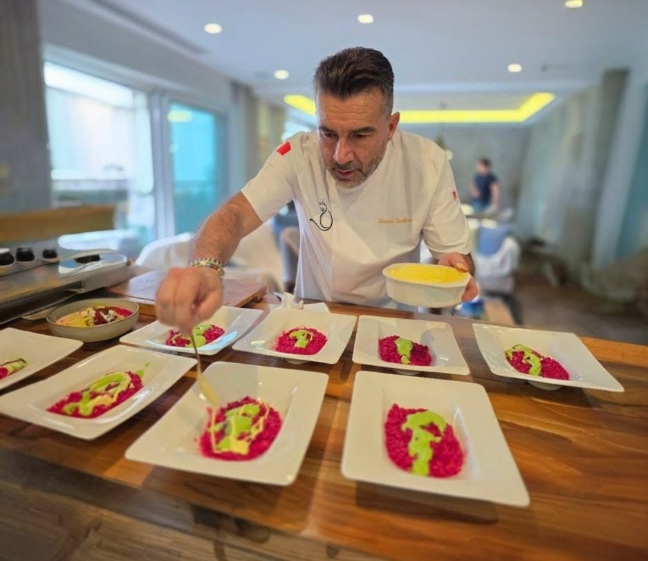 Oggi la mia cucina è un equilibrio tra tradizione e innovazione. Uso ingredienti locali, ma mi lascio contaminare da influenze internazionali. Attento alla stagionalità, alla salute e alla sostenibilità, senza rinunciare alla creatività. La definirei una cucina consapevole, elegante e aperta al mondo.